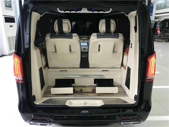 奔驰V260L美杜莎版内饰是前宾夕法尼亚首席华人设计师jaine设计,内饰从原来的商务7座改装成隐藏式6座商务车,中间隔断处增加两个独立的隐藏式秘书座椅,一键式电动收展。大大节省了内部的空间,使内部空间达到最大化。