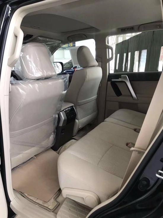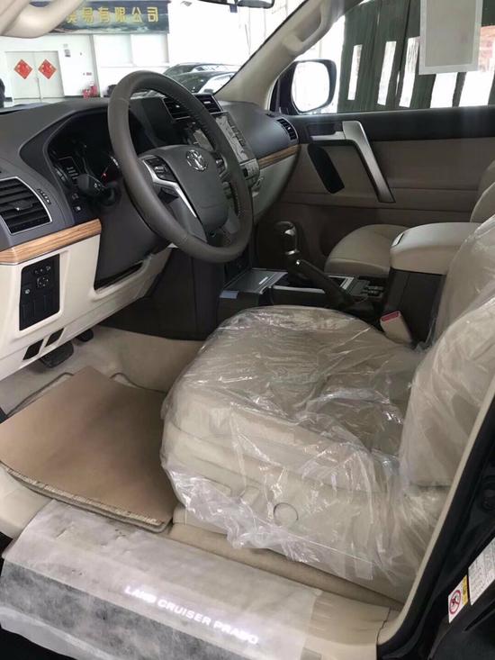 19款霸道4000顶配VX配置:天窗,9气囊,6速,KDSS,双钮,18铝轮,中差,后差,浅色桃木真皮多功能方向盘,倒影,主副驾驶电动座椅,真皮通风座椅,行李架,巡航定速,环车影像,熏黑氙灯LED,大灯清洗,大屏,电眼,冰箱,电动折叠后视镜,智能卡,一键启动,镀铬套件,自动空调,脚踏,尾翼,雾灯,彩条,外挂备胎,胎压检测