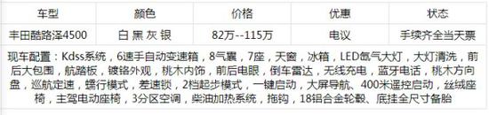 天津金力平行进口车在海外预定的全新2019款中东版丰田柴油酷路泽4500现车到店,配置丰富,颜色多选。本公司为了回馈老客户,对这款车做了一个优惠促销的活动,现车配置优惠万元,手续随车当天提走。现车配置颜色齐全,随时可提,全国上牌。得益于国家的政策扶持,越来越多的汽车消费者开始了解平行进口车这一新生事物。相对普通中规车,平行进口酷路泽的性价比非常高。在外观细节内饰舒适性以及动力表现方面,到底如何?今天我们就来实车讲解下。对这款车感兴趣的朋友往下看,拨打下方咨询电话了解最新行情价格。