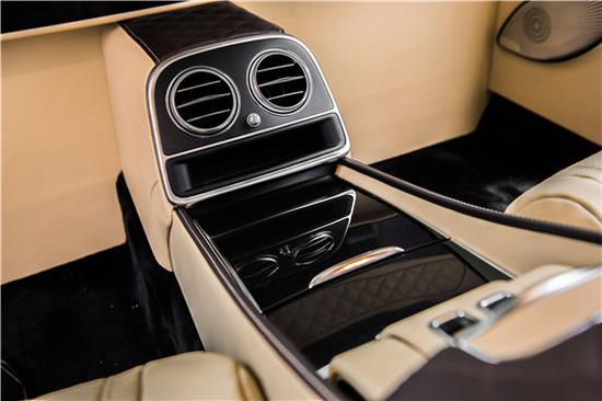 奔驰迈巴赫S600内部装饰延续了之前迈巴赫62的设计风格。后排贵宾座采用航空座椅设计,相比古斯特和飞驰更显奢华。在后排两张座椅的中间设置有车载冰箱,后车门结构经过了重新设计,同时在门板上还有独特的点缀。