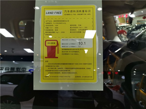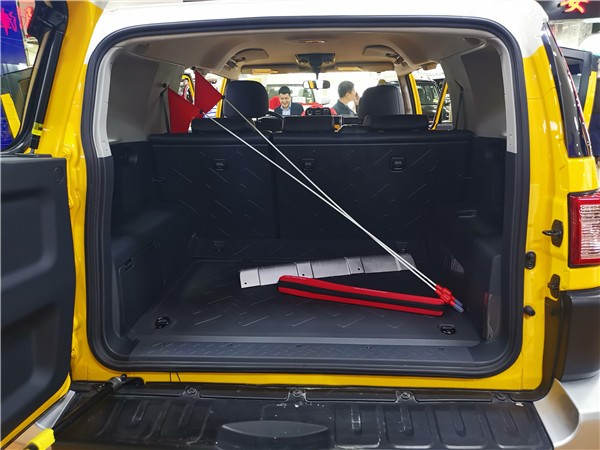 19款丰田酷路泽FJ的长宽高分别为4670/1905/1830mm,轴距为2690mm。较大的车身尺寸也让它拥有了较大的后备箱空间。将第 二排座椅放倒之后,容积会扩大到将近1900L!后备箱的地板还进行了防滑处理,非常的实用。