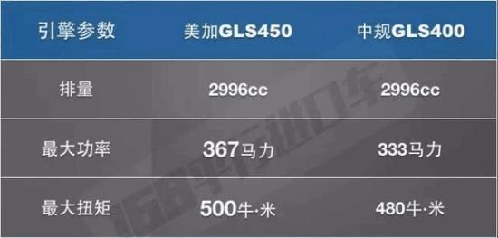 第一:发动机优势,GLS450是美加独有的,虽然跟中规的400同为3.0T,但是从参数上看出,美加动力更胜一筹。
