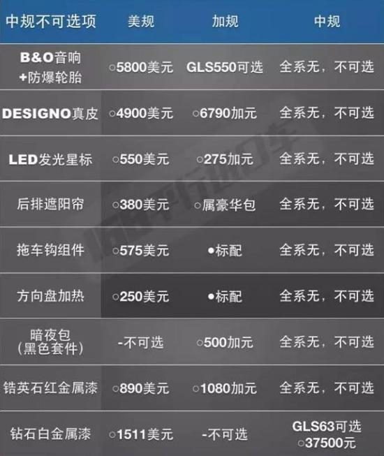第三点:配置优势,作为原产地,美规GLS可选装项目全球最多,至于怎么个多法后面会介绍。加规仅次于美规,毕竟近水楼台。