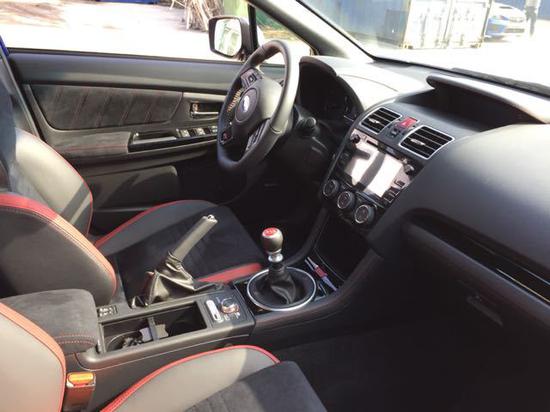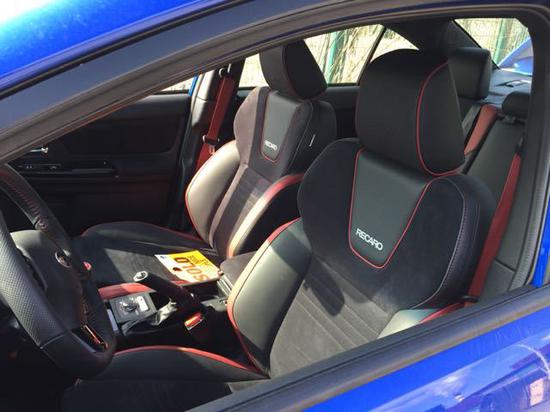 STI标配record运动座椅,座椅两侧的凸起能够有效的包裹驾驶者的身体,在剧烈的驾驶条件下,将驾驶者固定在座椅之上。