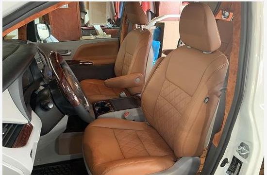 19款丰田塞纳内饰方面:整体很豪华精致,这也是丰田多年来的设计坚持!而且造型很有科技感,中控台上设置了前排空调控制及部分车辆功能按键区域划分明确,操作起来很顺手,方向盘很精致而且握感厚实大小适中,并且带有电动调节功能。由于广泛的采用了吸音的材料,能提供最佳的乘座舒适性,不过原车采用的是丝绒座椅,现在所看见的是后期加装成的真皮座椅,升级实木地板,后排升级航空座驾带有座椅通风加热以及按摩功能,让人坐上去更加舒适。