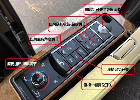 附上一张中间座位扶手上的功能按钮,是不是很方便?再说动力方面: