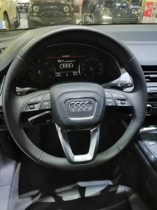19款加版奥迪Q7舒适版 白粽 车架号:6525# 标配:7座、氙灯 全景天窗 三幅运动方向盘 方向盘加热 前座椅电动调节 驾驶员记忆座椅 前后座椅加热 后视镜加热 后窗隐私玻璃 三区空调 MMI广播 前后电眼 led日行灯 电尾门 巡航定速 导航系统 手写板 倒影 64万