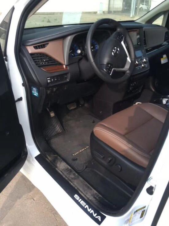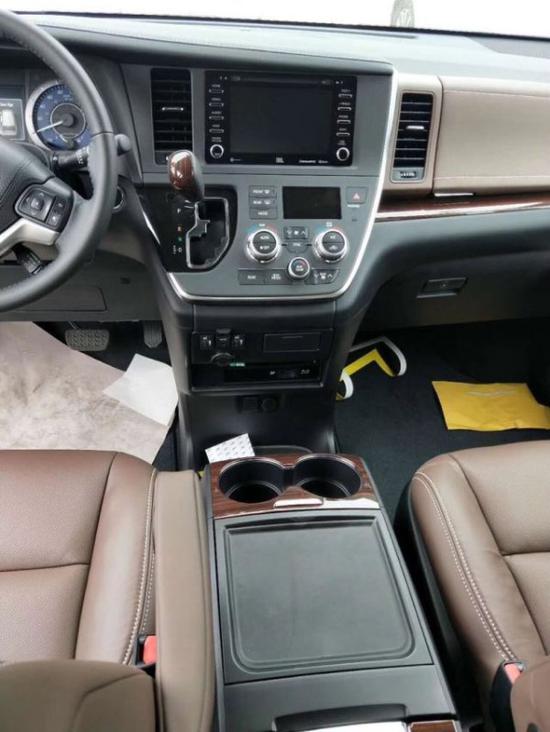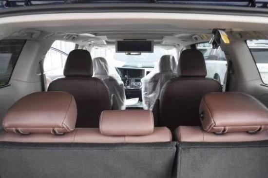 19款墨版丰田塞纳两驱LTD顶配,白棕配置:7座,18寸轮,双天窗,氙灯,LED日行灯,智能卡一键启动,双侧电动门,电尾门,并道辅助,前后电眼,吸顶DVD,JBL音响,真皮电动座椅,前座椅加热,三区空调,二排座椅腿部支撑,三排座椅电动折叠,后视镜电动折叠带加热带记忆功能,后排隐私玻璃,多功能方向盘(蓝牙,定速巡航,导航)胎压监测,行李架,备胎,金属漆