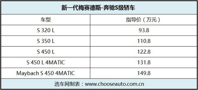 2017年9月19日,新一代梅赛德斯-奔驰S级轿车(后文简称新奔驰S级)正式上市,共推出S 320 L、S 350 L、 S 450 L、S 450 L 4MATIC以及迈巴赫S 450 4MATIC在内的五款车型,具体售价区间为93.8万-149.8万元(详见下表)。奔驰S级历来是中大型豪华轿车的标杆级产品,全球范围内销量已经累计超过400万辆,现款在售的第十代车型也已经销量突破30万辆,其中中国市场占据其近1/3的份额,迈巴赫车型中国市场更是超过了6成份额。大客户经理咨询方式在文章底部