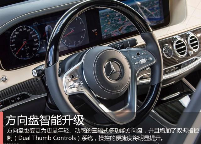 新奔驰S级的内饰升级非常容易捕捉,将现款车型独立的中控液晶屏与全液晶仪表合二为一,内饰整体的科技感、未来感陡然而生。方向盘也变更为更显年轻、动感的三辐式多功能方向盘,并且增加了双拇指控制(Dual Thumb Controls)系统,操控的便捷度将明显提升。