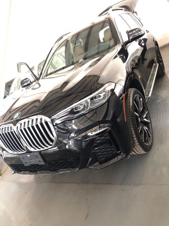 宝马X7采用宝马全新家族设计,双肾的进气格栅面积相当庞大,细长的大灯组采用开眼角的设计,使新车横向视觉感受更宽。新车灯组内部布局精致,配备了矩阵式激光大灯,点亮后效果可佳。新车在前杠下方的设计格外有气势,配上镀铬条的融入,显得新车有着十足的豪华感。