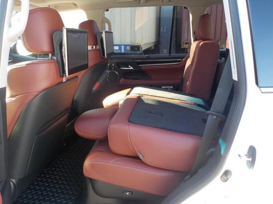 2019款雷克萨斯LX570全车八座Semi-Aniline顶级皮椅,带来了更加豪华舒适的乘坐质量,独到座椅设计,使第二排座椅只需要轻松扳动拉杆就能够用一只手轻松收折,第三排两段式电动收折座椅,让车主弹指间完成多样化的车内空间配置,并且配置了前排加热通风座椅、第二排加热座椅,以及前排中央扶手箱中的车载冰箱。