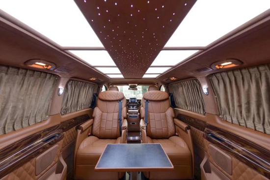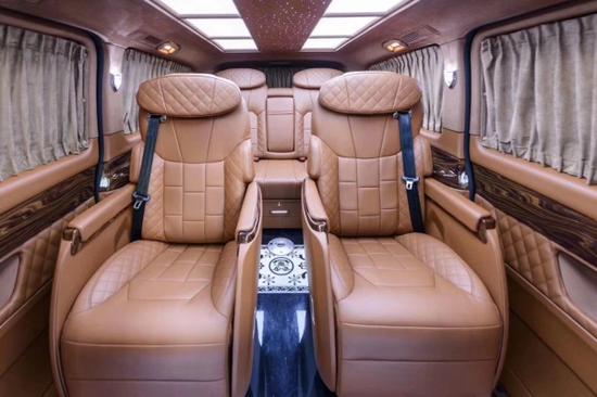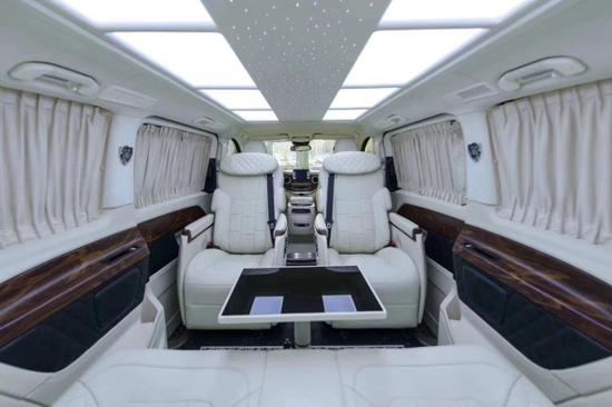 2018款奔驰V250限量版首发V250改装伴花失美 。2018款奔驰V250房车贵宾舱则用采用豪华皮革、麂皮绒包覆,前后舱采用电视+吧台的实用隔断,BOSE5.1殿堂级音响环绕系统+32寸高清升降电视+索尼蓝光DVD的经典车娱组合,给您舒适与娱乐相结合的享受。前后双屏控制系统,这个改装方案是独一无二的,目前在其他车型上还没有普及哦!