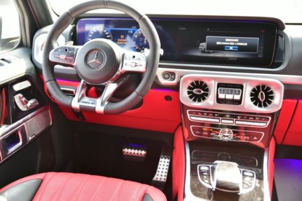 内饰设计:19款奔驰G级的内饰相比老款有了明显的提升,采用了奔驰最新的双屏幕式设计,全液晶仪表盘和中控台屏幕都达到12.3英寸。同时内饰质感和工艺都有了很大的进步。较之于现款车型,它的内饰发生了巨大的变化,融入了不少现款奔驰S级、E级的设计元素,从而变得更加豪华,而家族式的连屏设计则凸显了车内的科技感。当然了,经典的“三把锁”按键自然不会缺失,并且设置在中控台最为显眼的位置。