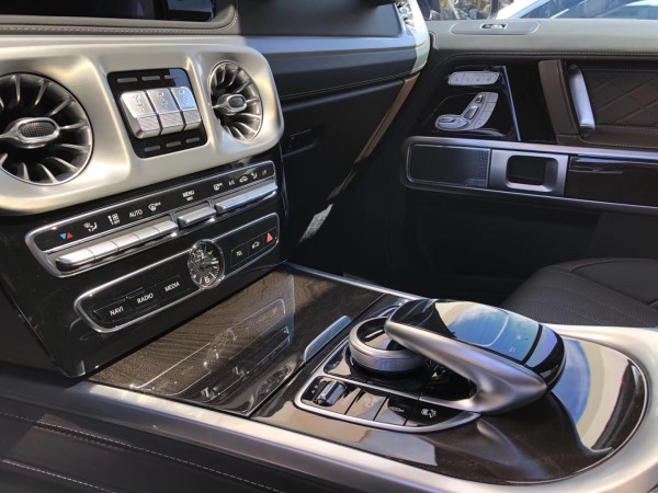 19款全新G63内饰方面,新G63保留了新G500的整体设计,除配色差异外,新车还换装了全新造型的平底式AMG运动方向盘,其两侧配以打孔皮质包裹,下部镀铬装饰的造型也与新G 500明显不同,看上去十分战斗。此外,全液晶仪表盘+中控大屏的双12.3英寸屏幕设计在新车上也没有缺席,营造出了浓郁的科技感。