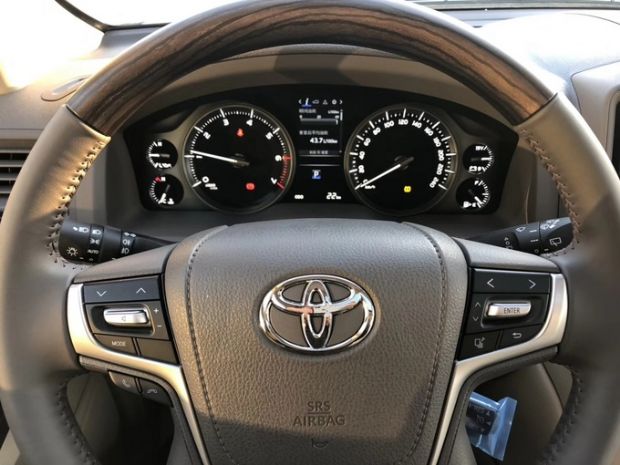 2019款丰田酷路泽4000舒适豪华的内饰则展现了丰田兰德酷路泽4000的另一面,没有过多的棱角,被顶级透气材质包覆的坐椅配合银色条装饰,散发出一种令人心醉的温馨,真皮内饰,显得更加精致。仪表盘、方向盘和排挡等位置均配以桃木装点,而中控台则换成了具有磨沙手感的金属板件,尽显豪华质感。整个内饰氛围变得更显豪华质感,相对简约的功能按键设计,也令操作更加简便。