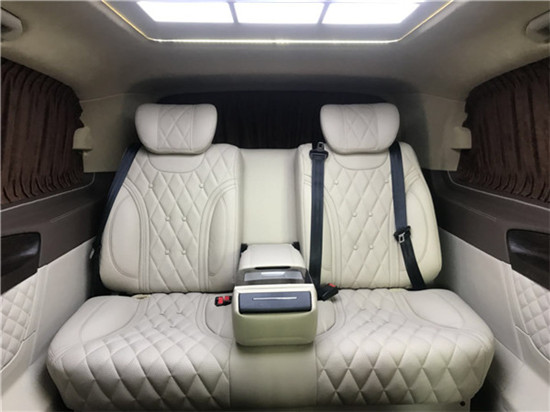 整台车采用了前后无隔断的设计,隐私性稍差空间性更好,便于商务接待的同时兼顾家用,定制风格采用经典的迈巴赫元素,宽大的航空椅配上迈巴赫舒适头枕,坐在上面就想美美睡上一觉。