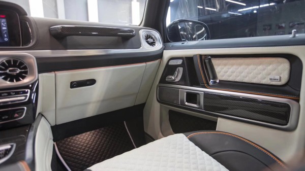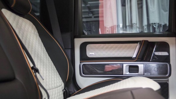 新车外观部分,全新巴博斯700 Widestar在G63的基础上,增加了诸多巴博斯套件,使得整车设计更加霸气十足,超大超宽的包围设计。外观方面,Widestar以其宽大的轮眉而闻名,它的车身宽度增加了3.9英寸(10厘米)。当使用者打开门时,LED照明会照亮踏板,巴博斯标志也会亮起来。宽阔的前后保险杠融合了大量的黑色网格。