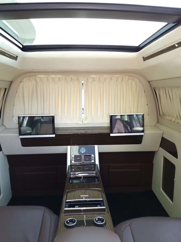 配置:路虎3.0T高功率发动机,380马力(还可以后期升430马力,6活塞刹车卡钳,HSE包(8速手自一体变速箱、地形响应、动态稳定控制系统、陡坡缓降控制系统、滑动全景天窗带手势盲点、电吸门、穿孔温莎真皮座椅、20项前排座椅加热与后排电动调节加热后座、加热方向盘、三个区温控、铝踏板带路虎揽胜刻字、交互式驱动显示、10寸触屏、380W英国之宝高级音响系统、苹果系统控制、前后电眼、后倒影、车道保持、动力后挡板、并道、交通标志识别、巡航定速、司机状态监控、明确退出监控、360停车辅助、后方交通监控、第二代全地形反馈),车顶升高,行李架,22寸14幅刀锋轮毂,原车电动踏板,11.6寸高清大屏吧台娱乐,支持Wi-Fi上网,支持高清电影播放,滑动全景天窗,十色氛围灯带,分隔舱,一体贯穿式操控台,7寸智能中央控制触摸屏,控制全车包括(吧台娱乐、升降玻璃雾化、电动窗帘、十色氛围灯带、总统商务座椅、ALPINE多媒体液晶播放器、全车电器控制),后舱《路虎原厂座椅开关控制》总统商务座椅20向调节(带通风加热按摩、电动舒适腿托),后排扶手隐藏式冰箱,空气净化器,英国之宝380W音响升级,柚木拼花地板,电动私密窗帘,酒柜,杯架,后舱桃木滑道,防盗密码箱,原车脚感电尾门,全车路虎原厂桃木升级