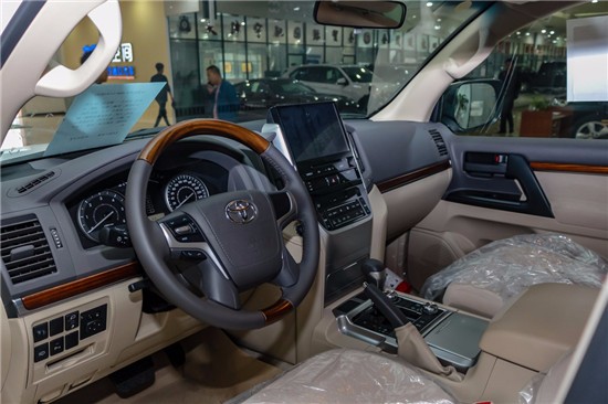19款中东版酷路泽4500中控台换成了具有磨沙手感的金属板件,增强了内饰的质感。在仪表盘方面也并无变化,双炮筒式的结构加上红线元素酷劲十足,信息量也十分清晰。整体内饰设计,更是充分满足了消费者对高端SUV内部空间的更高要求。