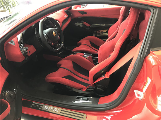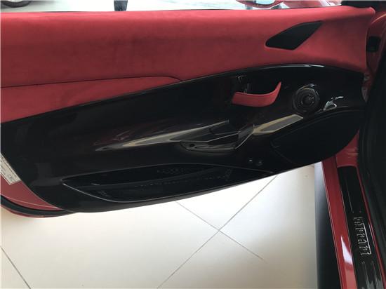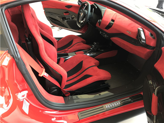法拉利488 Pista采用简约的内饰设计,去除了所有不必要的元素,营造与众不同的竞速之感。车型内部多处采用碳纤维、Alcantara等轻量化的特别技术材料。此外,该车型还移除了副驾驶储物箱(通常位于副驾驶前方的面板区域),并在座椅后方和车门上增加了储物袋。