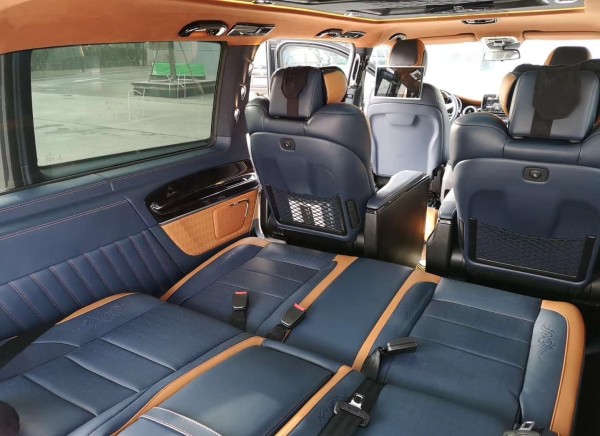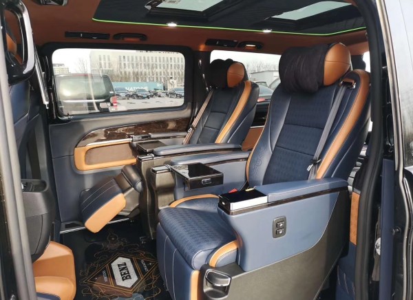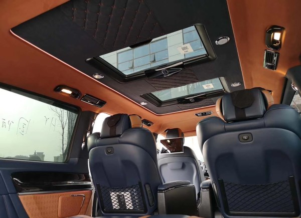 18款奔驰V250非凡的内饰展现在每一个细节,无隔断式设计让内部空间感更加宽阔。中央的首长席座椅多功多样,包括有多向电动调节、腿托、前后旋转等。车顶采用简洁化的设计,采用Alcantara包裹高档感十足。两张座椅皮质与填充物方面都以舒适为主。上面的缝线也相当细腻,首长席折叠电脑桌闪耀。