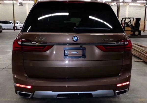 宝马X7尾部:扁平化尾灯的设计,下方的保险杠的尺寸上面是更大的,也是在一定上面突出了自身的一个越野性质的野性美,整体的外观设计上面是很不错的。