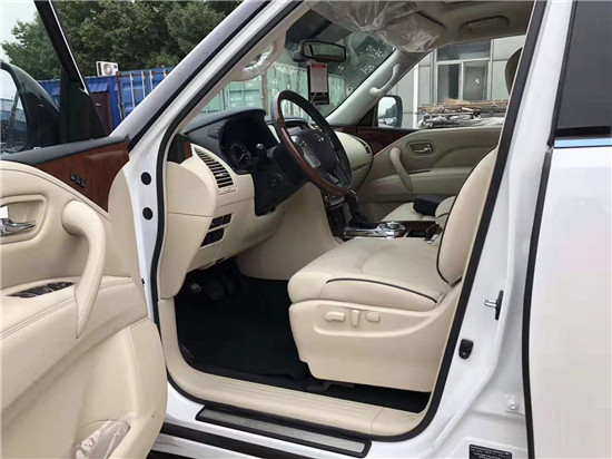 中控台增加缝线装饰,辅以全新压纹的门内真皮包裹装饰,提升豪华氛围。此外,新车还具有第三排座椅电动折叠、13扬声器Bose音响、三区恒温空调等等。 英菲尼迪QX80内饰搭配实木装饰,显示了车辆的好换气息。中控台运用了大量的皮质包裹,做工出色。实木包裹的方向盘带有加热功能,支持四方向电动调节,手感一流,多功能按键功能强大。 19款英菲尼迪QX80惯用的四幅风向盘设计,粗细比较合手再加上真皮加实木的用料,手握感觉极佳。另外方向盘功能强大,集成了音响、空调控制及蓝牙车载免提系统,使驾驶者在行车中更为安全,做到手不离方向盘。同时,QX80还将提供一系列高科技装备,如碰撞预警以及自动远光灯等。内饰材料高档半苯胺皮革就是其中之一,车门装饰也将改良。