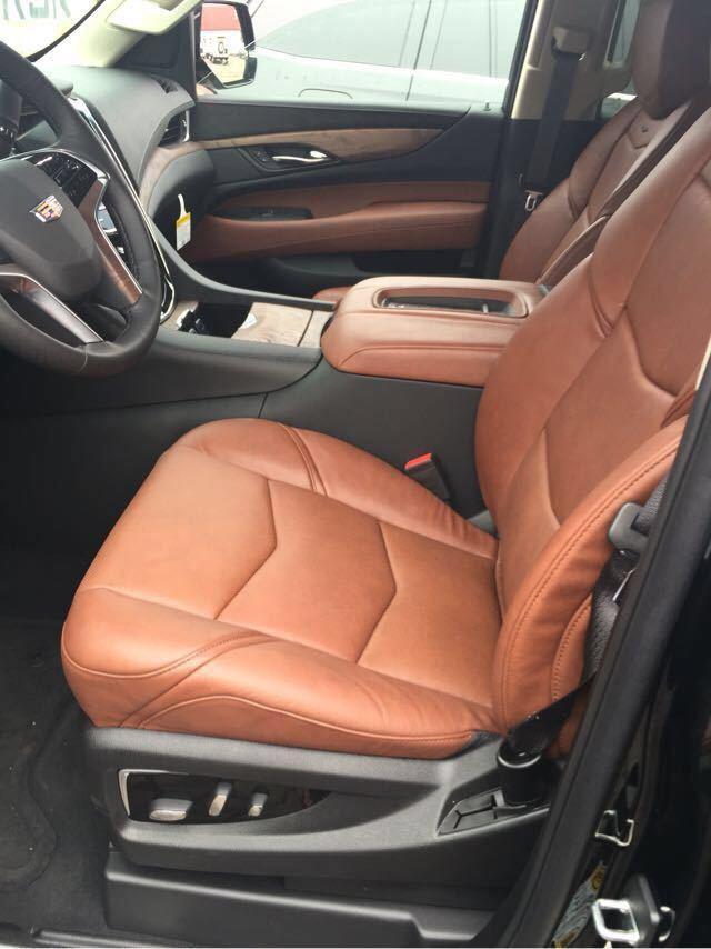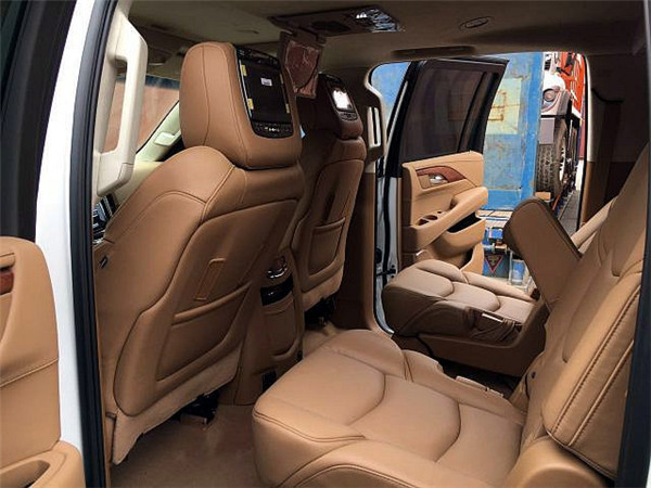 17款凯迪拉克凯雷德(铂金版)拥有3,302毫米的超长轴距,以及能轻松容纳七个超豪华舒适座椅的超尺寸座舱空间。座椅全部采用了高级真皮包裹,造型十分独特,提供了非常完美的舒适性跟包裹性,门板的真皮运用也给车内的乘客提升了另外一个感觉。