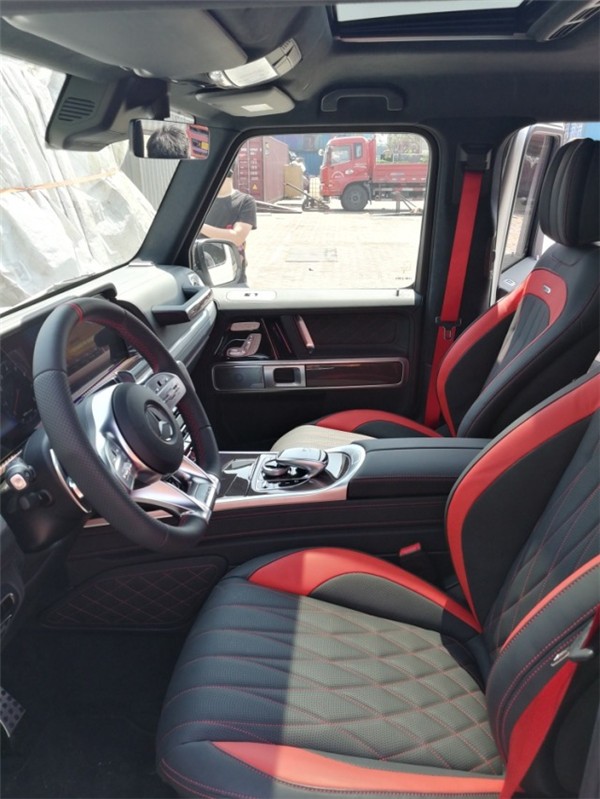 内饰方面,新款车型延续了g500的风格,同样采用了最新的设计语言,两块大屏夺人眼球,视觉冲击力极强,搭载comand操控系统,整体豪华感较老款有了质的提高,同时保留了大g独有的硬派气息,中控造型平直陡立,大量的银色金属材质覆盖很有档次,副驾驶台的扶手也更能增加它的独特气质,amg专属的平底方向盘也更有战斗气息。