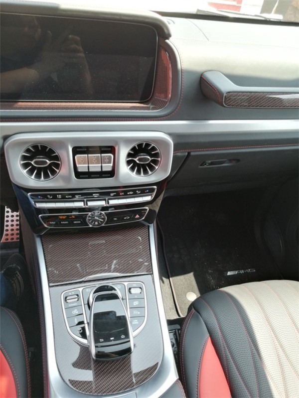 2019款全新G63内饰方面,新G63保留了新G500的整体设计,除配色差异外,新车还换装了全新造型的平底式AMG运动方向盘,其两侧配以打孔皮质包裹,下部镀铬装饰的造型也与新G 500明显不同,看上去十分战斗。此外,全液晶仪表盘+中控大屏的双12.3英寸屏幕设计在新车上也没有缺席,营造出了浓郁的科技感。