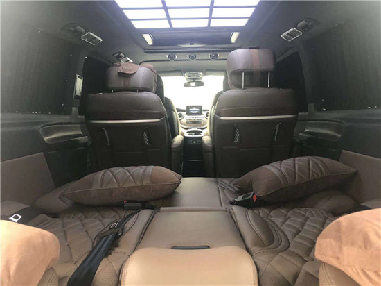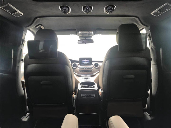 中控台运用的是高级碳纤维,纹路清晰,手感细腻。中央有奔驰COMAND智能驾驶系统,随时监控车辆动态和影音系统调控。非凡的内饰展现在每一个细节,无隔断式设计让内部空间感更加宽阔。中央的首长席座椅多功多样,包括有多向电动调节、腿托、前后旋转等。