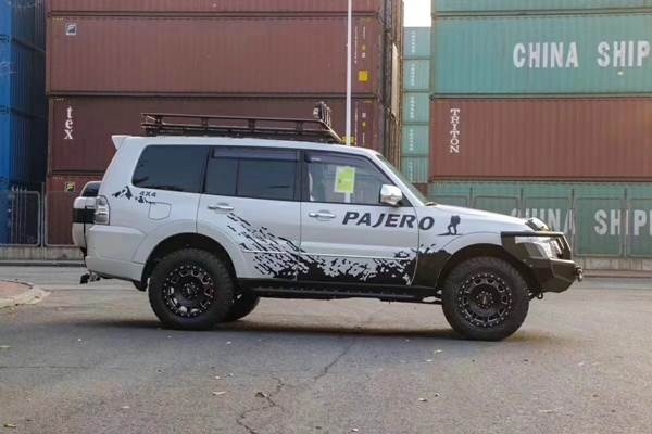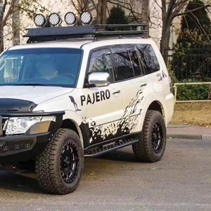 三菱帕杰罗V97尺寸虽不如兰德酷路泽大,但比普拉多还是不输,比普拉多更高的离地间隙,更大的离去角度,脚踏、行李架齐全外观整体比普拉多更硬派些,现款的普拉多已经改的圆润太多,帕杰罗相对之下好像被时间凝固了。