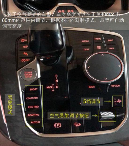 5:就是新版的空气悬架,拥有5档高度调节,最大调节范围是正负40毫米。不过,最低的那一档是用来装载货物的,其余4档才是用于行驶。并且,X5的空气悬架跟后轮转向系统,是互不兼容的,所以,要么选有助于越野的空气悬架,要么选有助于公路驾驶的四轮转向,两者不能兼得。