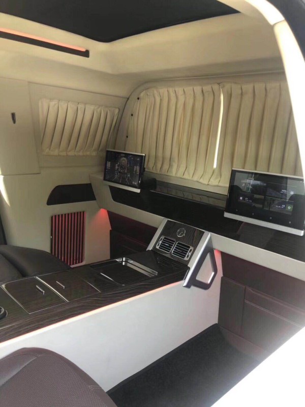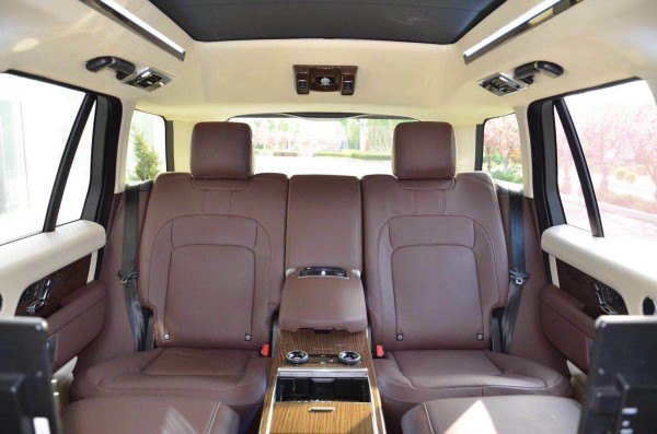 路虎揽胜皇家一号加长版前方座椅加热带按摩功能,车载冰箱一应俱全,由于车比较长,所以配备了前后对讲功能。路虎揽胜皇家一号加长版车内配有一个类似于KTV似的吧台,带蓝光SONYDVD,索尼高清LED电视,以色列卫星天线,以及空气净化器,车内带氛围灯。