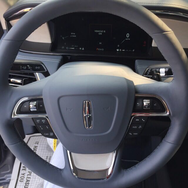 2018款全新林肯领航员的中控设计十分简洁,极为考究的做工搭配着整齐有序的中控布局,透露出一丝优雅和宁静。两块大尺寸液晶屏幕的加入也让全新领航员具备了这个时代不可或缺的科技感。方向盘的皮质柔软,手感细腻,各个按键设置合理且功能丰富,你可以很轻松的对多媒体音响、蓝牙电话等进行操作。林肯全新领航员配别的这块12英寸全液晶仪表盘,视觉效果绝对堪称一流,尤其当切换驾驶模式时,显示动画非常漂亮。