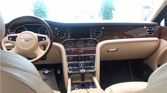 宾利慕尚加长版手工打造的中控台相当经典精致,宛如艺术品一般。其实慕尚给人的感觉确实更像是一辆可以自己驾驭的车,各种功能按键展露无遗,驾驶模式选择非常显眼。方向盘手感绝对一流,后方仪表盘科技感十足,中间的液晶屏尺寸比较大,显示的信息非常丰富。
