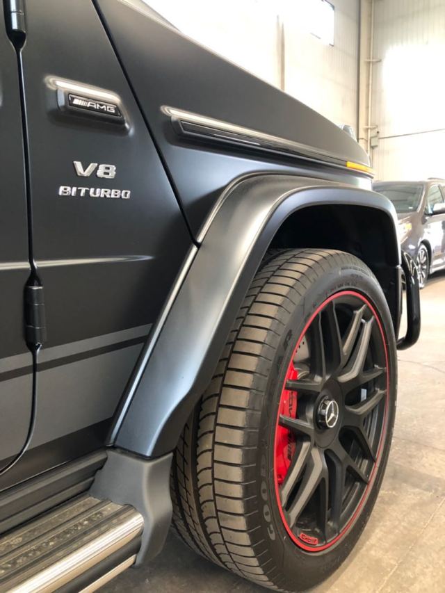 19款奔驰G63整体延续了经典的方盒子造型,细节上则是略微调整,各种圆润的弧度也能体现出设计师在经典和中力图打造的亮点。奔驰G63AMG限量版独特的外观造型设计,经过重新设计的前进气格栅与两侧圆形大灯相互呼应,整个前脸的造型更为抢眼,进气格栅的多幅式镀铬采用了镂空的设计,保险杠也经过了重新的设计,让新款大G63的前脸看上去更为粗犷,氙气大灯下方还增添了时下流行的LED日间行车灯设计,看起来更具时尚感。感兴趣的朋友关注文章最下方,详情来电详询,近期店内提供多台特价车,欢迎来电咨询品鉴。