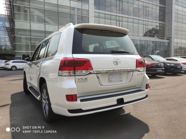19款丰田酷路泽5700VXS限量版参数动力:进口类型:丰田(平行进口) 长*宽*高:5170*1980*1930MM 车身结构:5门7座SUV 油箱容积:138 发动机型号:3UR-FE 排量:5663 进气形式:自然吸气 气缸排列形式:V8 每缸气门数:4 最大马力:397 最大功率:270 最大功率转速:5600 最大扭矩:529 最大扭矩转速:3200 变速箱:8挡手自一体变速箱驱动方式:前置四驱四驱形式:全时四驱 车体结构:非承载式 轮胎规格:285/60 R20 备胎规格:全尺寸。