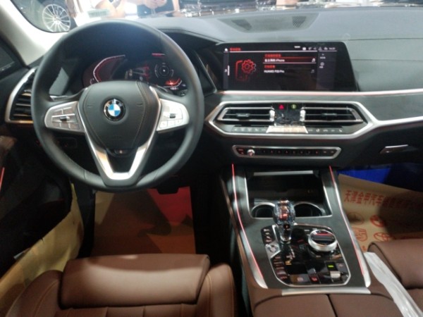 19款宝马X7中控台设计的非常简洁,大家看一眼就可以看得出来是宝马家族的设计风格。在用料方面当然也会比较的高档了,豪华感营造的非常到位,但是没有一点张扬的感觉。方向盘是采用的皮革包裹,全液晶仪是12.3英寸的,布局看着很新颖,左侧和右侧分别是时速表和转速表,中间是可显示的导航地图,显示是十分清晰的。