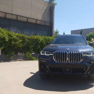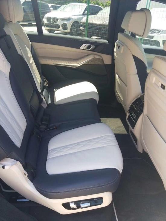 2019宝马X7 北极灰/蓝白双拼内饰 7座配置:HEA包(远程启动,M运动排气系统,22寸V副造型双色轮毂,电吸门,BMW 智能钥匙,M运动包,M空气动力学包围,高光亮车窗饰条,M方向盘,M刹车系统,M运动排气系统,去除叶子板字母标示,高亮黑顶棚导轨,Sky Lounge全景玻璃星空顶天窗,后排遮侧阳帘,行李箱管理系统,加热和冷却保温杯架,前排通风座椅,前排舒适座椅,旅行和舒适后排电子系统,nappa皮仪表台,空气净化包,自动五区空调,驾驶位和乘客座椅按摩,交通拥堵辅助,专业驾驶辅助,BMW 激光大灯,停车辅助全景摄像,抬头显示,CraftedClarity水晶玻璃套装。