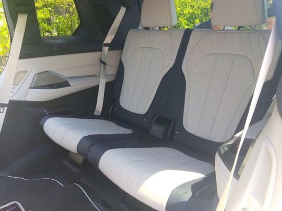 座椅方面:X7标配7座座椅,2+3+2的布局,中间两个独立座椅是选装件,在功能方面,全车座椅标配座椅加热,前排座椅可选装通风和按摩。第三排座椅也是电动 调节。后排娱乐也是选装的,除了屏幕之外,后排娱乐系统还包括蓝牙DVD、两套独立耳机、HDMI接口,另外X7为第二排和第三排各设两个USB用于充电。四驱自动空调是X7的标准配置,可以选装五区空调,这样以来第三排乘客也能自己调节温度,十分周到。另外全新宝马X7有一套香氛系统,有8种气味可供选择。