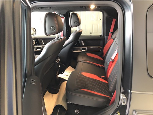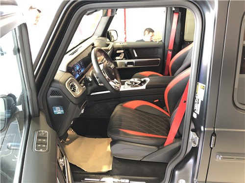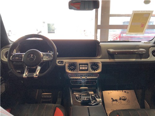 内饰方面:2019款全新G63内饰方面,新G63保留了新G500的整体设计,除配色差异外,新车还换装了全新造型的平底式AMG运动方向盘,其两侧配以打孔皮质包裹,下部镀铬装饰的造型也与新G 500明显不同,看上去十分战斗。此外,全液晶仪表盘+中控大屏的双12.3英寸屏幕设计在新车上也没有缺席,营造出了浓郁的科技感。