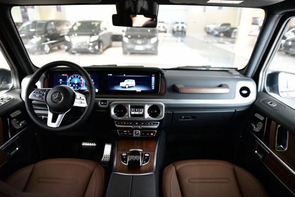 内饰设计:19款奔驰G500经过全新改款内饰豪华气派,此前大家一直嫌弃奔驰G500的内饰不够先进,但在了解过这款新车的内部设计后,大家应该不会再这么说它了。Designo真皮座椅质感十足,64色氛围灯设计令车内的档次感得到进一步的提升,三幅式多功能方向盘带有加热功能,操控感极佳。仪表显示与中控显示两块显示屏连接在一起,这是近两年较为流行的设计元素,看起来科技感十足。