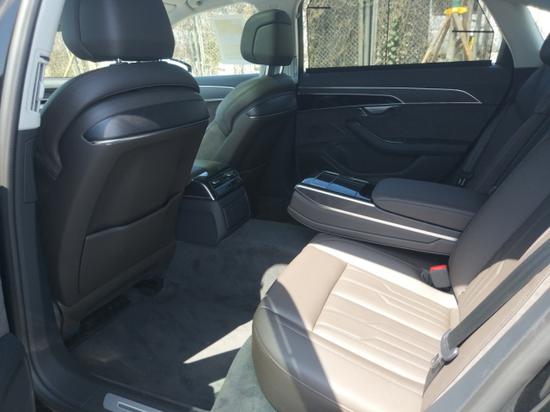 但是作为一款豪华大型车,新一代A8L太过强调科技感,反而缺少了一些这个级别该有的豪华感。例如大面积使用的黑色钢琴烤漆材质饰板,虽然视觉效果不错,但是极易留下指纹和划痕,再者,中控屏幕或许是没有加入涂层,也非常容易留下指纹印,这都是非常“掉档次”的小细节。还有,整个内饰的配色以及用料和奔驰S级相比都略有差距。空间,185cm测试者,前排头部空间调到4指,后排头部空间3指,腿部空间就超过3拳了,尾箱容积为520升,足够使用。