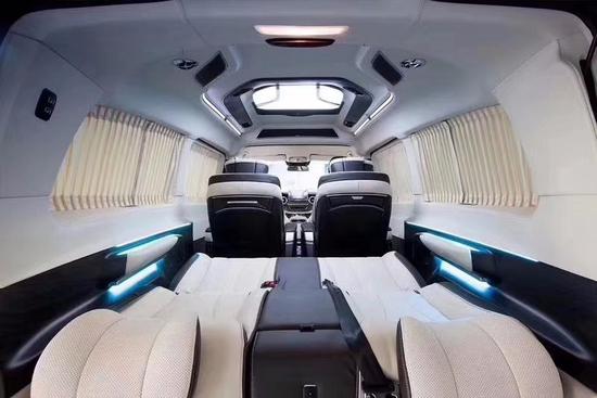 进口奔驰V250 商务车改装电动天窗可为乘客提供明亮、温馨的车内环境。天窗可电动开启,让人在旅途中更加亲近自然。遮阳帘可抵御强光的照射。在加配清凉系蓝色棚灯,让您欲罢不能。