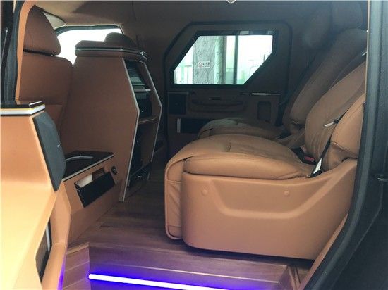 乔治巴顿战车后排航空座椅电动多向调节,加热按摩功能,车顶探照灯,高级鹿皮及乔治巴顿标志全舱柚木地板,吧台3D式设计、白色光带及氛围灯,座椅中央扶手,马鞍式设计带击沉触摸控制系统,可开启式天窗。