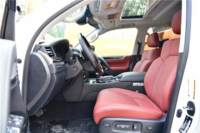19款雷克萨斯LX570加规版现车全新设计的多功能方向盘、中控台、车门内侧均由真皮及珍贵实木内饰包裹,半苯胺高级真皮座椅给予乘客恰到好处的支撑和柔软舒适的触感。而水平式仪表盘设计,可以让驾驶者更清楚掌控车辆的位置与状态,提供道路与越野的操控感。12.3英寸超大液晶显示屏创下同级之最,分辨率达 1280*480,新增的大尺寸全彩抬头显示器可分三列显示丰富信息,成为全系标配。