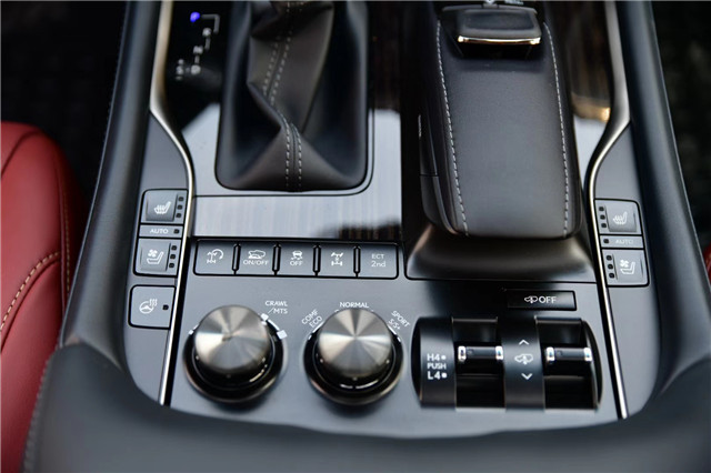19款雷克萨斯LX570加规版现车新增加了一套空气动力学套件,在前后保险杠下方加入了相应的扰流设计,侧裙也进行了满足空气动力学的优化。前保险杠下方的扰流特征将大幅度的降低进入车底的空气流量,同时强化了对于刹车系统的冷却。在经过了扰流特征的点缀之后。全新的雷克萨斯LX570的前脸要变得更有层次感。所配备了自动爬坡控制系统(Crawl Control),通过自动控制发动机和制动系统,帮助车辆以极低的车速平稳跨越崎岖路段,甚至脱离陷车的困境。