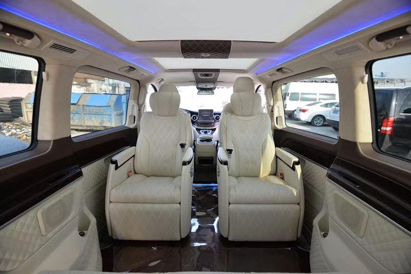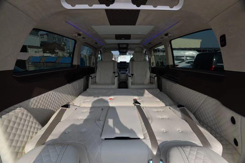 在乘坐性方面:这款奔驰V250巴博斯改装的版本依旧延续了经典的7座式格局,2驾驶座+2航空座椅+3连电动沙发床的设计,主副驾驶配备后台板以提供旅途中必要的置物小桌的需求;中间属集成了旋转电动、通风加热按摩等8项舒适调节的总裁座椅,后排可倒放平躺的双人床足以缓解旅途疲倦。关注微信公众号:《天津港平行进口车在线服务》每日更新行情